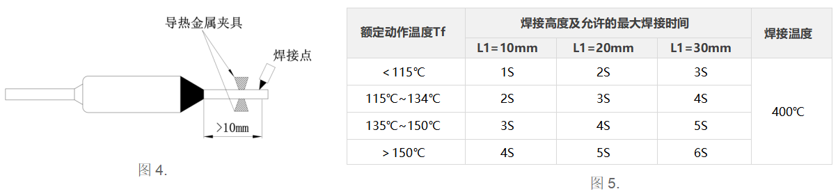 2.TCO的引线需要靠近热源或直接与热源连接。TCO通过引线感知温度。由于引线直接连接到感温合金上,一旦引线感受到热源,感温合金就会感受到温度。由于引线没有绝缘,建议客户在引线外放置良好的传热和耐压套管。PS:TCO不允许悬挂在设备内部。